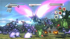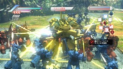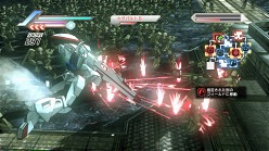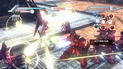 ファンネルなどを使って攻撃/防御の支援を行うパートナーストライク。νガンダムは,フィンファンネルをプレイヤーの周囲に展開し,バリアで防御してくれる。