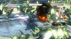 プレイヤーの周囲に向けて攻撃するパートナーストライク。ガンダムヘビーアームズ改は,上空から砲撃することで一定時間プレイヤーを援護する。
