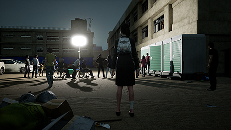 関連記事),災害時の健康維持,探索,生存者達との人間関係が主な構成要素となっている。都市災害に遭遇したときの臨場感が味わえるだけでなく,登場人物とついつい本気で係わってしまう,ゲーム内なのに人間らしい行動を意識したくなる,といったことを,本作で実現しようとしているそうだ。
