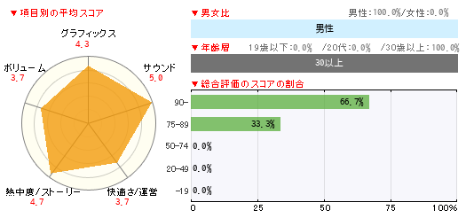 グラフィックス サウンド 快適さ/運営 熱中度/ストーリー ボリューム 5 5 4 4 3 -