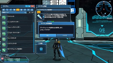 アイテムパックを有料で拡張した時の最大所持数が、100から150に拡張!