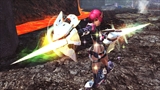 レーサーオブエッジ:目標に向かって回転するタリスを投げる。ボタンを押し続けることで,目標に向かって急接近! 武器をソードに切り替え,斬り払い追撃を行うぞ。