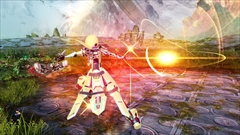 ブライトネスエンド:体を一回転させながら切り払う。チャージすることで,より広範囲を切り払う追加アクションが発生!