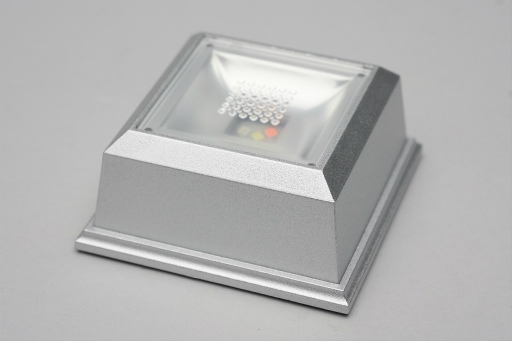 専用台座はLEDを搭載しており,一定間隔で色が変化していく。電源は単3形乾電池×3 |