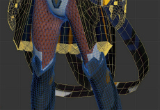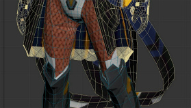 次にボディを見ていこう。ボディペイントは「ゲンショウタイツ」で,細かい表現のチェッカーとして採用した。レイヤリングは「ウィオラフロウ影[Ou]」と「ヴァルザレシオ鋼[Ba]」だ。パーツの重なりに加えて,カラーを変更することで,同系色の変化を見られる。