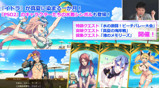 「ファンタシースターオンライン2 es」でも夏らしいスペシャルクエスト「ドキドキ! 水着で大混乱!!」をはじめ,水着キャラクターを含む新チップ,そして★14武器が登場するイベントの情報が明らかになった。