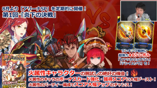 8月から「アリーナGP」が定期的に開催。第1回「炎下の決戦」ではランキング報酬に強力な★6シンボルが用意されている