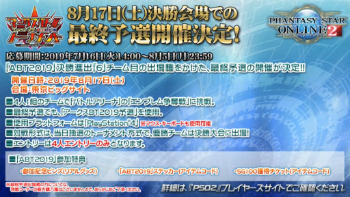 全国5か所で開催されたファンタシースター感謝祭2019も,いよいよ決勝会場を残すのみ。フィナーレは8月17日,東京ビッグサイトにて行われる。ぜひ会場に足を運んで,