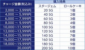 ・スタージェム:2,000円以上から20SGずつ追加