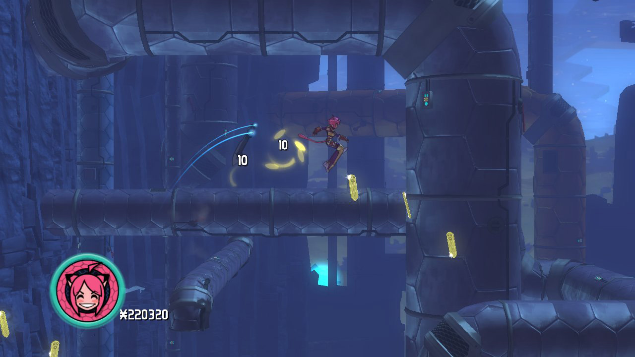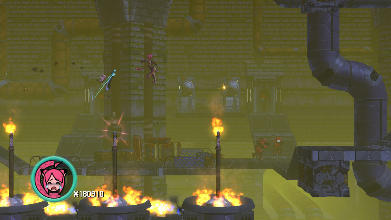 Kitは垂直の壁をよじ登ったり,天井からぶら下がって移動したり,スライディングで壁の隙間を潜り抜けたり,2段ジャンプで障害物を飛び越えたりと,いかにも猫耳美少女らしい身軽なアクションの数々を繰り出すので,早めに操作に習熟しておきたいところ。ゲームの難度はそれほど高くないものの,使用するキーが多いので,ゲームパッドでのプレイを推奨しておこう。