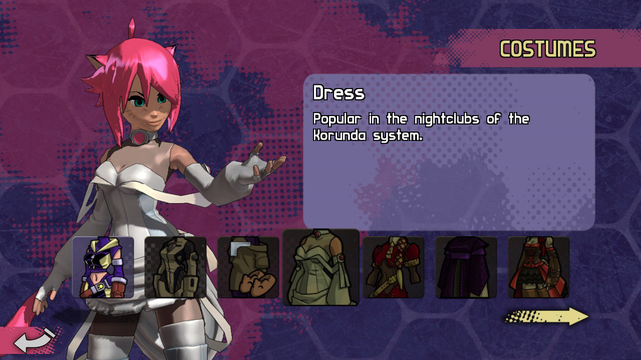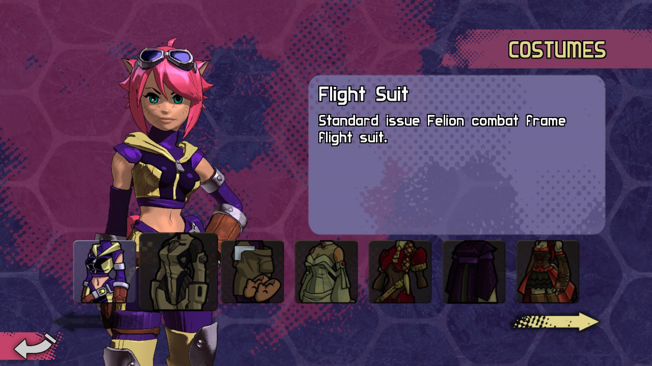 また本作では,ステージ中に散らばっているHex(お金のようなもの)を集め,Kitの体力やスタミナの上限をアップさせる食べ物や,より攻撃力の高いブレード,新しいコスチュームなどを購入できる。なかでもコスチュームは,パジャマやドレスや着ぐるみ,さらにはJusticeそのものになりきれるものなど種類も豊富で,制作者はよく分かっている。