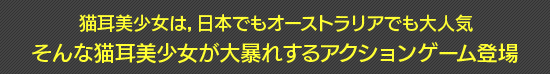 どうやらその思いは万国共通のようで,犬好きのくせに猫耳を愛してやまない筆者と志を同じくする心強い同志達が,遠く離れた海の向こうにも存在している。その一つが,オーストラリアに拠点を置き,「Transformers: Revenge of the Fallen」「Viva Pinata Party Animals」(邦題:あつまれ!ピニャータ 〜レッツ☆パーティー〜)などを手がけたデベロッパ,Krome Studiosだ。