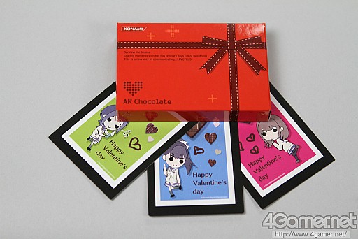 「バレンタインARチョコカード」は,チョコの香り付きARマーカーだ。「ラブプラスTOOLS」または,iPhone/Androidの専用アプリで撮影するとカノジョが現れるというもので,種類は全部で3つ。ニンテンドー3DSでは撮影するカノジョを選べるが,iPhone/Androidアプリではカードに描かれたカノジョが出てくるという仕様になっている。