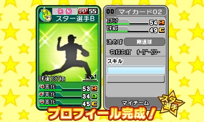 | スター選手O | 高校卒業 | 左投左打 | 先発 | オーバースロー /タイプ 20 |