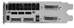 映像出力はDisplayPort×2とDual-Link DVI-I,Dual-Link DVI-Dの計4ポート。GTX TITANと異なりHDMIは備えていない |