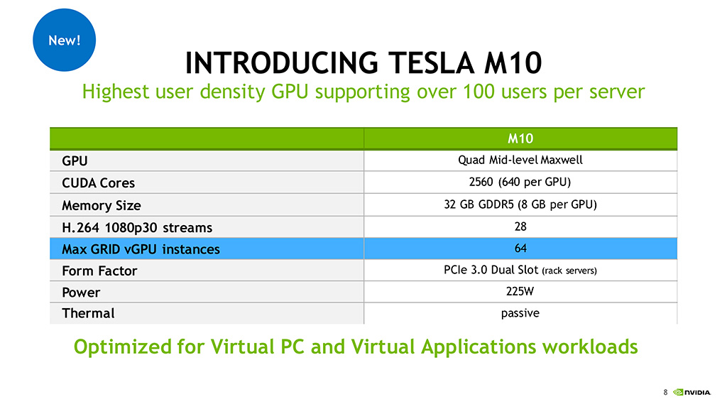 NVIDIA,仮想化ソリューション向け新型GPU「Tesla M10」を発表。カード1枚で最大64ユーザーを処理可能に
