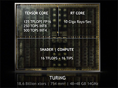 北米時間2018年8月13日,SIGGRAPH 2018においてNVIDIAは,「Quadro RTX」シリーズを発表した。186億トランジスタを754mm2という巨大なシリコンダイに統合する新世代のGPUコア「Turing」を採用する新世代Quadroは,最大で10G Rays/sのレイ処理能力を持つ,「史上初のレイトレーシングGPU」となる。