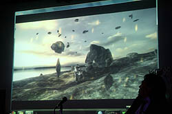 イベントの冒頭では,グレフの代表取締役である丸山博幸氏が,「ストラニア」が2Dスクロール型シューティングゲームであることや,Xbox LIVE アーケードにて2011年初頭に配信開始予定であることを,あらためて紹介した。「久々のメカシューティングなので,好き放題やらせてもらった」と,丸山氏は思い入れを述べた。