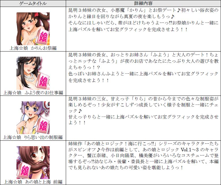 Android向け麻雀パズル「上海☆娘」シリーズに4作品がラインナップ