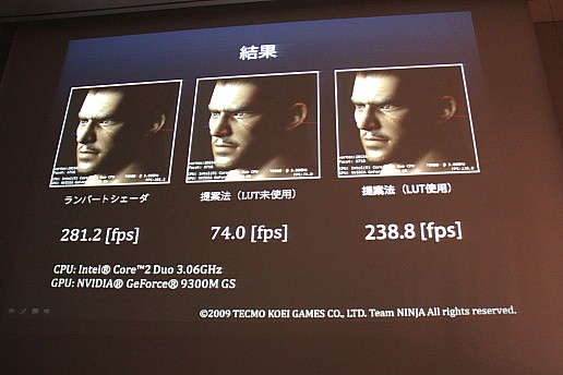ただ,指先や耳たぶなどの細かい部分では効果がはっきり出るものの,それ以外では分かりにくいことなどが課題として挙げられたようだ。引きの状態で戦うことが多く,動きも速い無双系のゲームだとちょっと微妙なのかもしれない。ちなみに,講演ではTeam NINJAのキャラクターを使った画像も出ていたので,こっちのほうに期待してしまうのは私だけではないだろう。