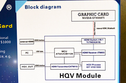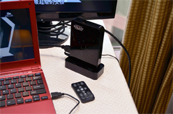 HQVエンジンの搭載と関連してか,GALAXYは,さらにAV機器寄りの製品「WHDI Stick」も展示していた。これはHDMI出力機器側に取り付けるトランスミッタとHDMI入力機器側に取り付けるレシーバのセットで。出力機器と入力機器の間をワイヤレス化してくれる製品だ。