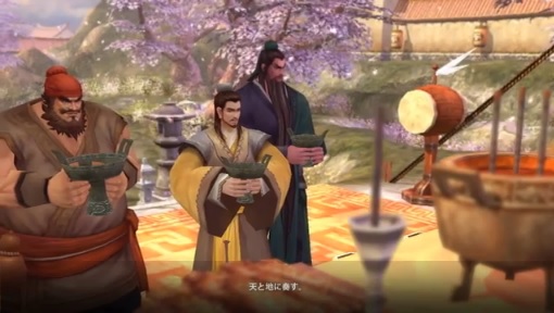 黄巾の乱は漢王朝を脅かすほどの勢いで広がり,政府はこれに対し鎮圧軍を編成する。鎮圧軍に参加した大勢の人物・勢力の中には,本作の主人公である劉備の姿もあった。鎮圧軍の出陣にあたり,劉備・関羽・張飛の3人が義兄弟の契りを交わす“桃園の誓い”は,三国志全体を通じて最も有名なエピソードのひとつだろう。