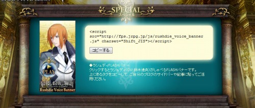 クリックすると、メサイアの騎士のひとり、ラシュディ(CV:鈴木達央さん)がしゃべるFLASH バナーを配信開始しました!