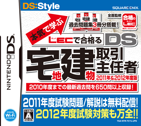 宅建の取得希望者はぜひ。ニンテンドーDS用ソフト「本気で学ぶ LECで合格る DS 宅地建物取引主任者 2011年&2012年度版」,2011年2月3日発売