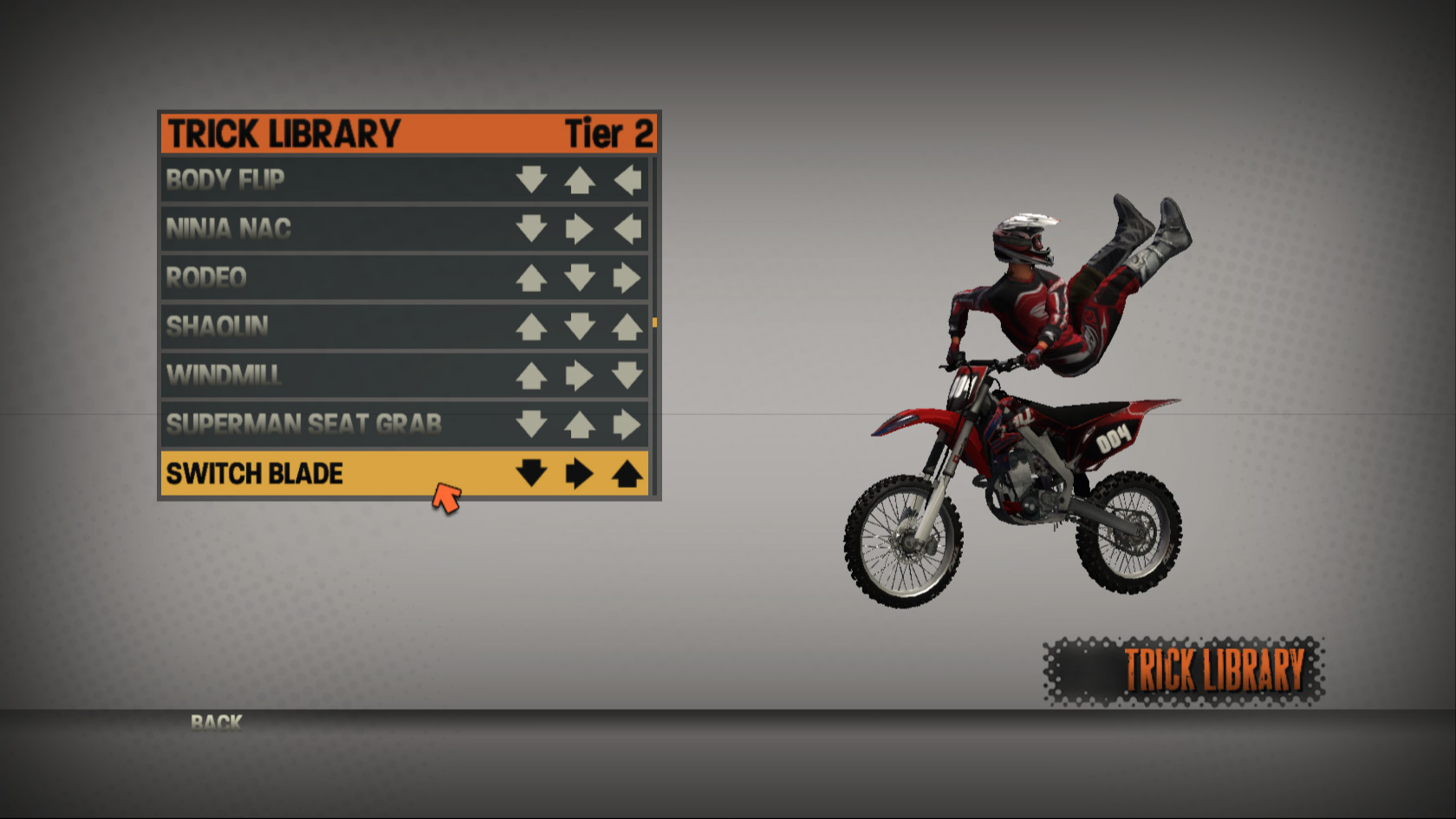 こうしたコースを手強いライバル達と共に走り,勝利を目指すわけだが,本作というか,シリーズ共通の特徴的な部分は,ジャンプ中にさまざまなアクションを繰り出せることにある。アクションとしては,ジャンプしているときにハンドルから手や足を離したりといった初歩的なものから,マシンから完全に体を離してしまうエキサイティングなものまでが,方向キーとアクションキーの組み合わせによってできるのだ。