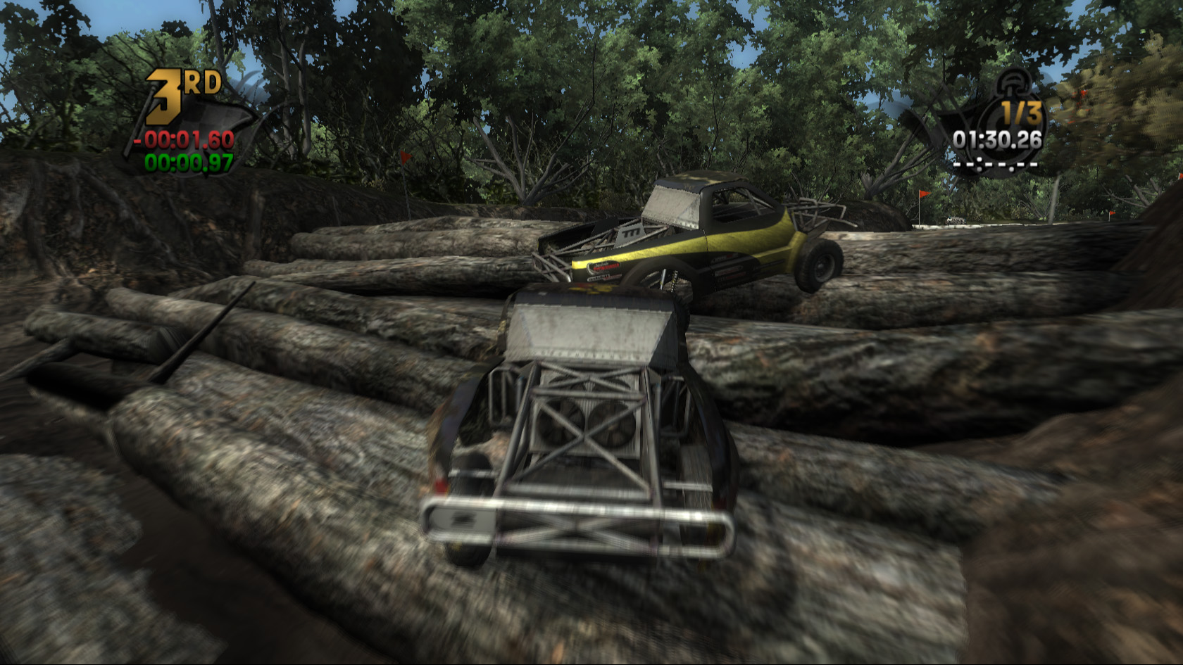 ベタ踏みでジャンプ台に突入し,空中へ。そして華麗なパフォーマンス。いやあ,どう考えてもゲームでしか体験できない,エキサイティングなレースが楽しめるのだ。