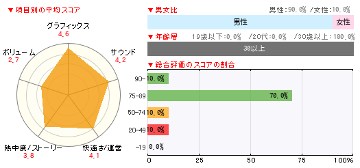 グラフィックス サウンド 快適さ/運営 熱中度/ストーリー ボリューム 5 4 4 5 2 -