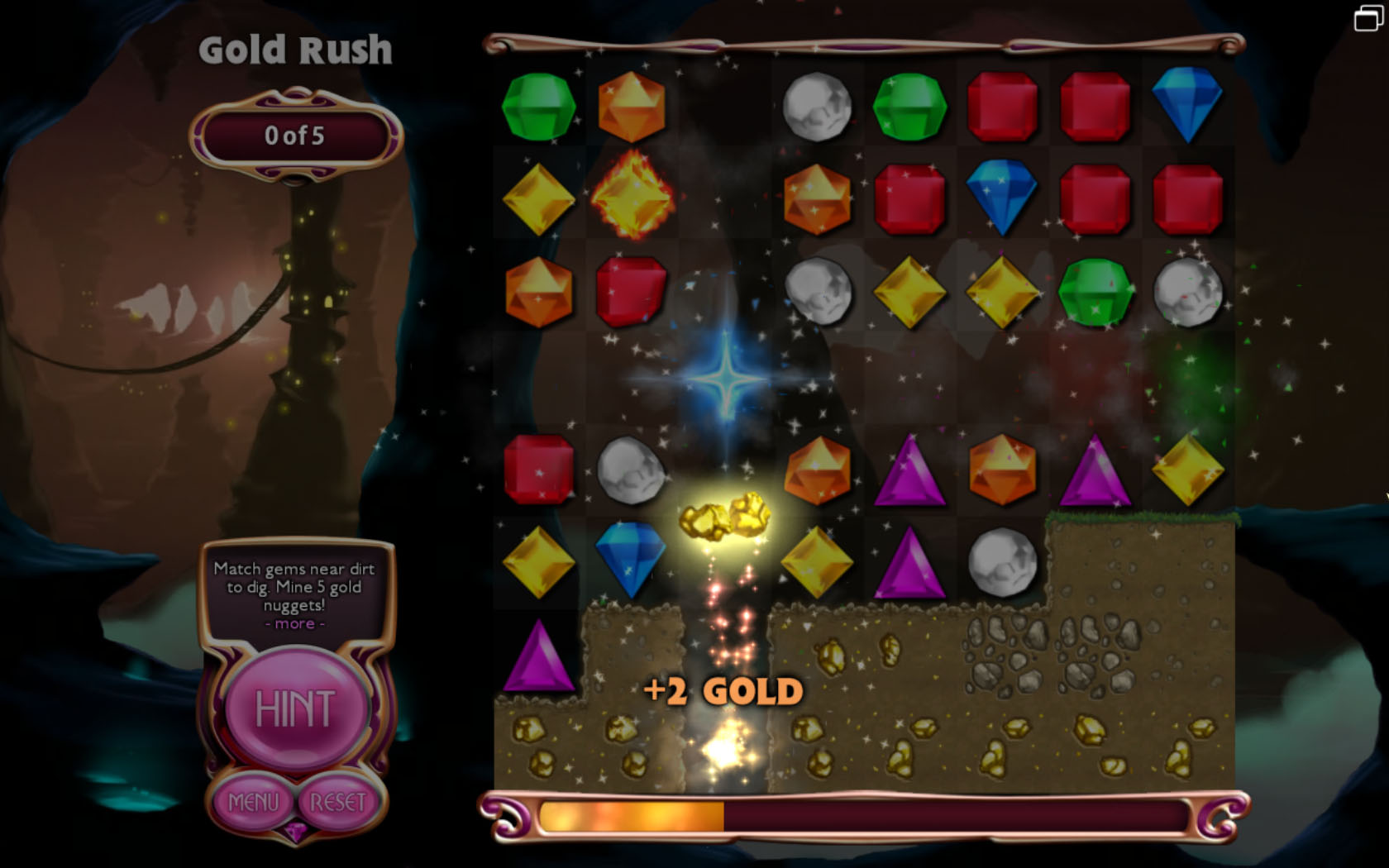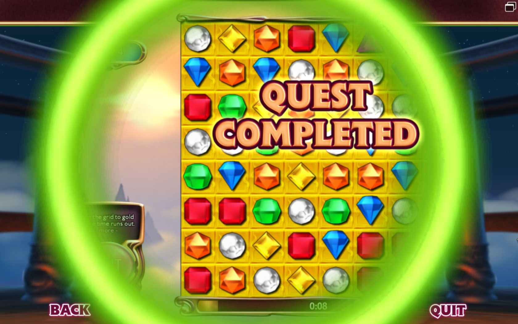 さまざまなクエストをこなしていくというゲームモード。クエストには,盤上に出現する蝶を解放(つまり,消すこと)していくButterfliesのほか,爆発で地面を掘って黄金を手に入れるGold Rush,消した宝石のあったマス目が黄金に変わっていくAlchemyなど,多種多様なものが用意されている。