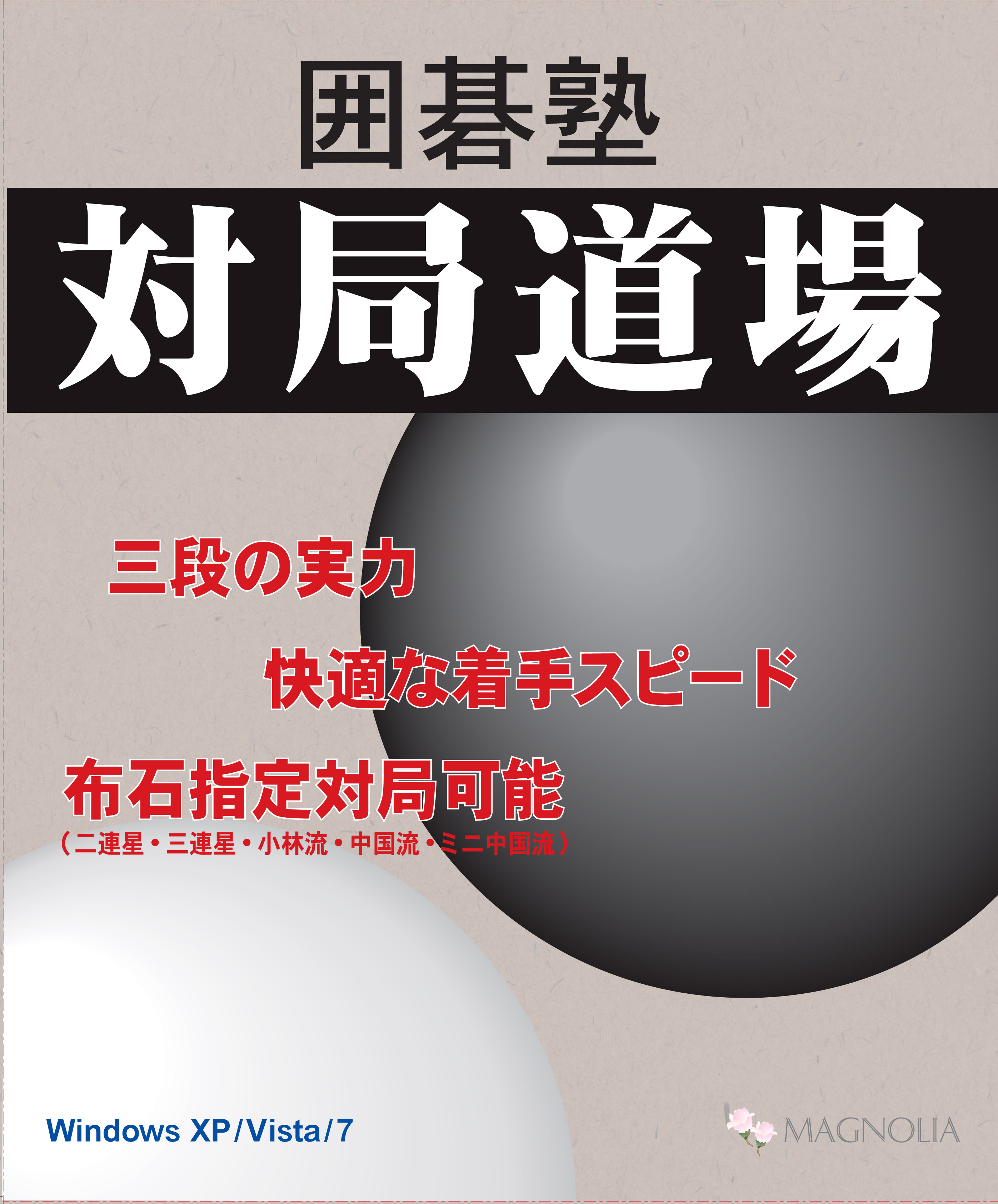 マグノリアは本日(12月10日),アマチュア三段相当の実力を持つPC用対局囲碁ソフト「囲碁塾 対局道場」を,12月17日に発売することを発表した。価格は,パッケージ版が8800円,ダウンロード版が7040円(ともに税込)。強さに加え,プレイヤーからの要望に応じて,最強モードでも30秒以内の早打ちを実現している。