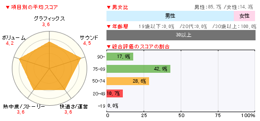グラフィックス サウンド 快適さ/運営 熱中度/ストーリー ボリューム 4 5 3 3 4
