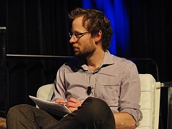 トークセッションの最後には,一時期物議をかもした,ペルソン氏の海賊版擁護の発言について,改めて質問が行われた。