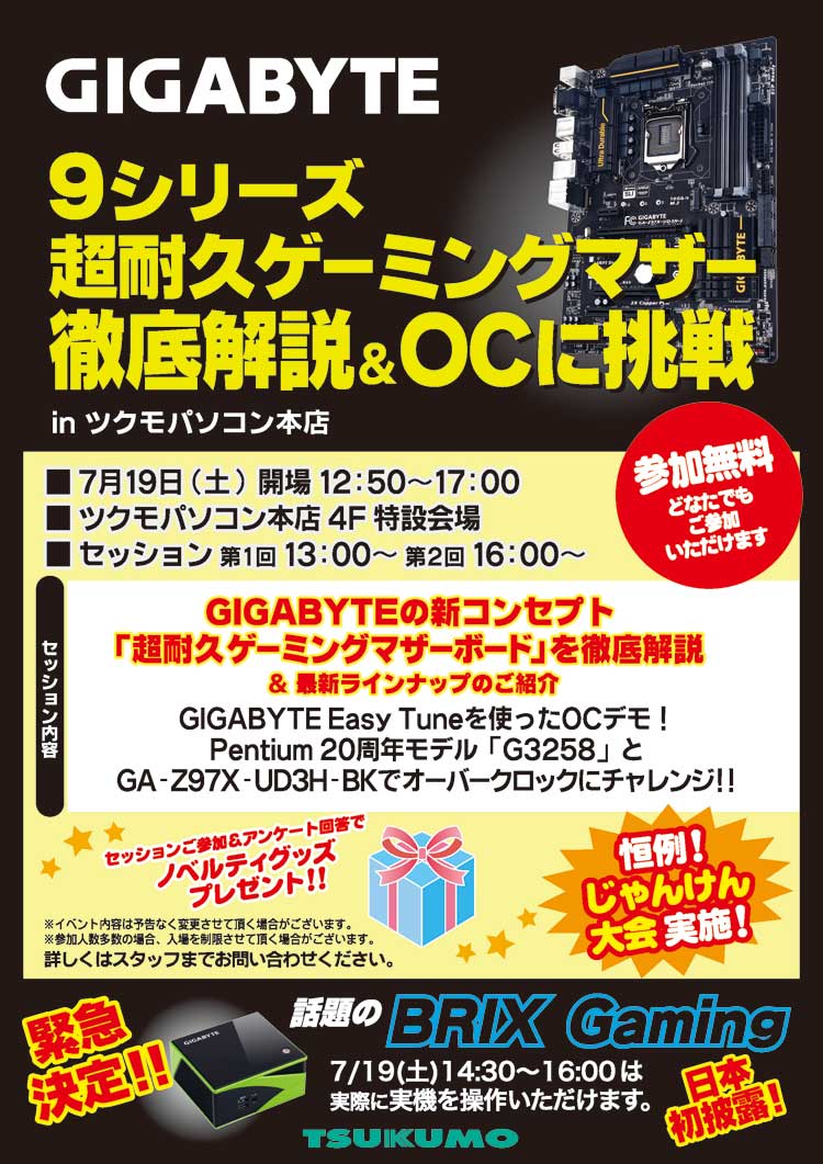 GIGABYTE,ゲーマー向けマザーボードの解説イベントを7月19日に秋葉原のツクモパソコン本店で開催