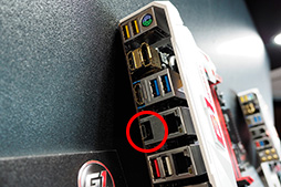 ![画像ギャラリー No.005のサムネイル画像 / [COMPUTEX]GIGABYTE,Skylake&Thunderbolt 3対応のゲーマー向けマザーボードを公開](/games/127/G012700/20150603096/TN/005.jpg) G1 GamingのIntel 100シリーズ対応マザーボードに搭載されるUSB Type-C端子(写真の赤丸内)。従来のUSBのような「上下」(もしくは「表裏」)がないため,接続しやすい。これが,G1 Gamingの上位マザーボードではThunderbolt 3対応になるわけだ |