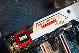 AMP-UP Audio」仕様となる。なお,マザーボード基板の本体からアナログサウンド回路部分を分離しているラインにはLEDが埋め込まれており,7色から好きな色を選んで光らせられるとのことだ。