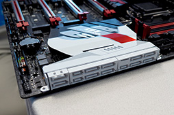 GeForceやRadeonの上位モデルが搭載するGPUクーラーなどの重さによってスロットがたわんだり曲がったりすることであると突き止め,抜本的な対策に乗り出した。その結果が,金属でシールドされたスロット「Ultra Durable Metal Shielding PCIex16 Slots」だ。