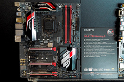 ![画像ギャラリー No.021のサムネイル画像 / [COMPUTEX]GIGABYTE,Skylake&Thunderbolt 3対応のゲーマー向けマザーボードを公開](/games/127/G012700/20150603096/TN/021.jpg) GA-H170-Gaming 3 PCIeスロット構成が変わって,マルチGPU構成は2-wayまでのサポートになった。Turbo B-Clockが省かれているのも目を引く |
