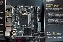 ![画像ギャラリー No.022のサムネイル画像 / [COMPUTEX]GIGABYTE,Skylake&Thunderbolt 3対応のゲーマー向けマザーボードを公開](/games/127/G012700/20150603096/TN/022.jpg) ゲーマー向けモデルではないが,オマケ気味にMini-ITXモデル,GA-Z170N-WIFI。デュアルIntel製LANコントローラ仕様で,基板背面側にPCIe 3.0 x4接続のM.2スロットを搭載する |