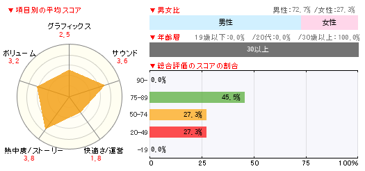 グラフィックス サウンド 快適さ/運営 熱中度/ストーリー ボリューム 3 4 2 4 4 -