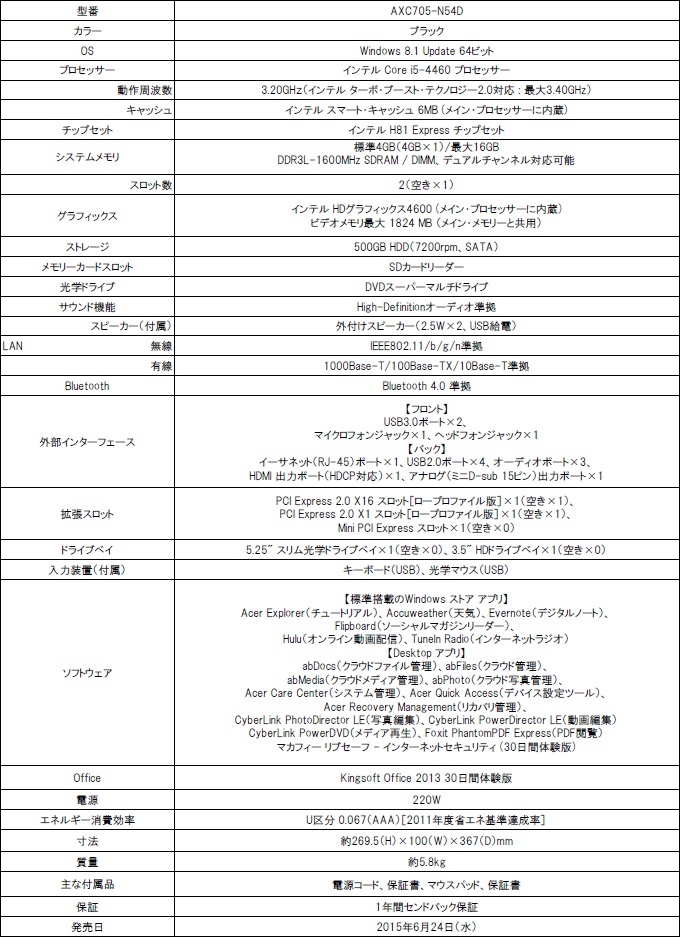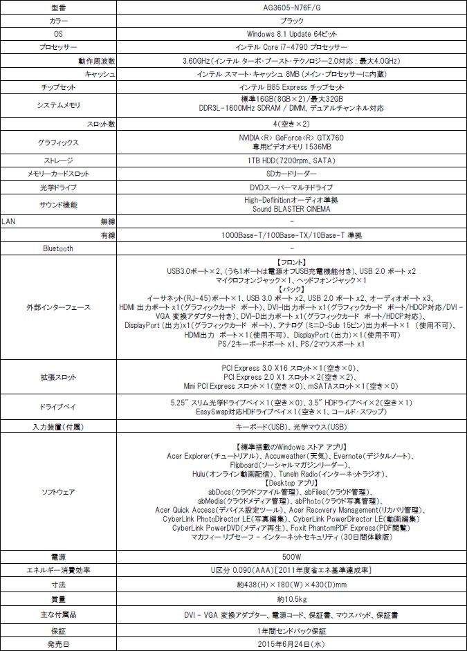 Acer,GTX 760+i7 4790搭載のゲーマー向けデスクトップPCを発売