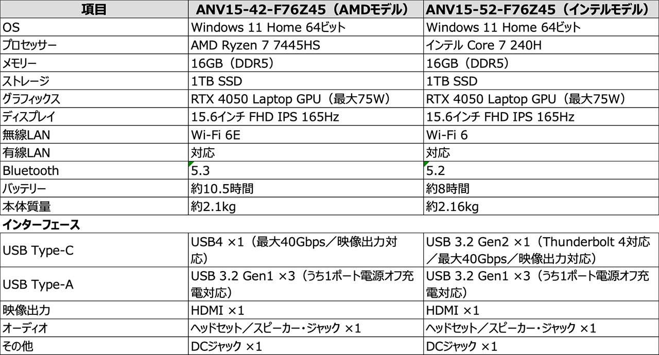 RTX 4050搭載のゲーミングノートPC「Nitro V 15」がAcerから発売に。AMDモデルとIntelモデルをラインナップ