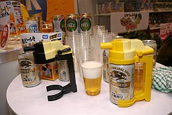 週末ゲーマーにオススメなのが,ビールと泡を綺麗な黄金比で注げるというこちらの商品。こいつを装着して普通に注げば,泡ナシの綺麗なビールが,レバーを押しながら注げば泡だけが出てくるという。単4電池1本で駆動して,モーター部を外せば丸洗いもOK