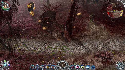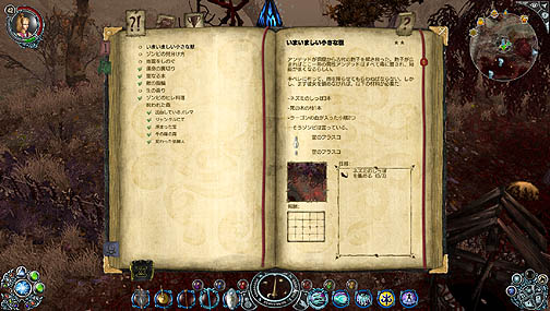 さらに目玉が埋め込まれた樹木や,赤い水を湛えた池などがあり,全体的に不気味な雰囲気だ。呪われた森に生身の人間はほとんどおらず,集落もゾンビで構成されている。