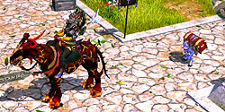 なお,呪われた森のとあるクエストをクリアすると,マウント(プレイヤーの乗り物)を販売する業者が出現する。彼らは「ユニコーン」「フレイムホース」といった,アイス&ブラッドで初登場となる馬を扱っているが,新種族の「ドラゴンメイジ」でプレイした場合は,「ドラコニコン」という竜の血を引く彼ら専用の馬を購入できる。値は張るが,見た目がかなりカッコイイので,ぜひ入手してほしい。