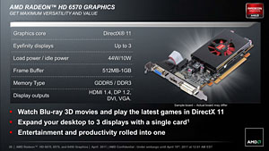 なお,HD 5570で組み合わせられるグラフィックメモリは発表当初だとDDR3のみだったのに対し,2011年4月時点ではGDDR5モデルも公式に存在が認められている。ただ,AMDはDDR3モデルの消費電力値しか公開していないので,その点は注意しておいてほしい。