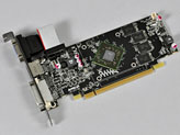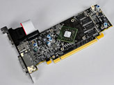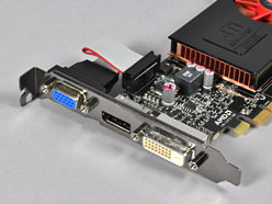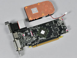 ただ,よく見ると写真でGPUの左側に見えるVRMが2フェーズから1フェーズに減っているのを確認できる。HD 5570リファレンスデザインと基板を共通化しているわけでもないようなので,コストを下げるべく,新規に起こしたのだろう。