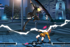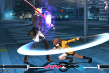 なので「飛ばせて落とす」ための飛び道具技も,メルブラに比べると豊富になっています。